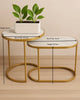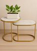The smooth marble surfaces sit atop golden tubular bases, creating a light and airy silhouette perfect for modern, minimal, and contemporary interiors. Use them together for a layered designer look, or place them individually across your home for a cohesive luxury aesthetic.