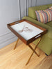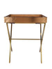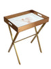 Be a trendsetter with our beautifully handcrafted 'Eviana Bird' print Gold Butler Tray Table. The artistic & luxurious lines of this Butler tray table will enhance the look & feel of any room. The PU Leather & Glass Printed tray top is easily detachable, offering versatility & convenience. Use in a corner to display treasures or the detachable tray can be used by itself. The steel table base is foldable & can easily be stored.