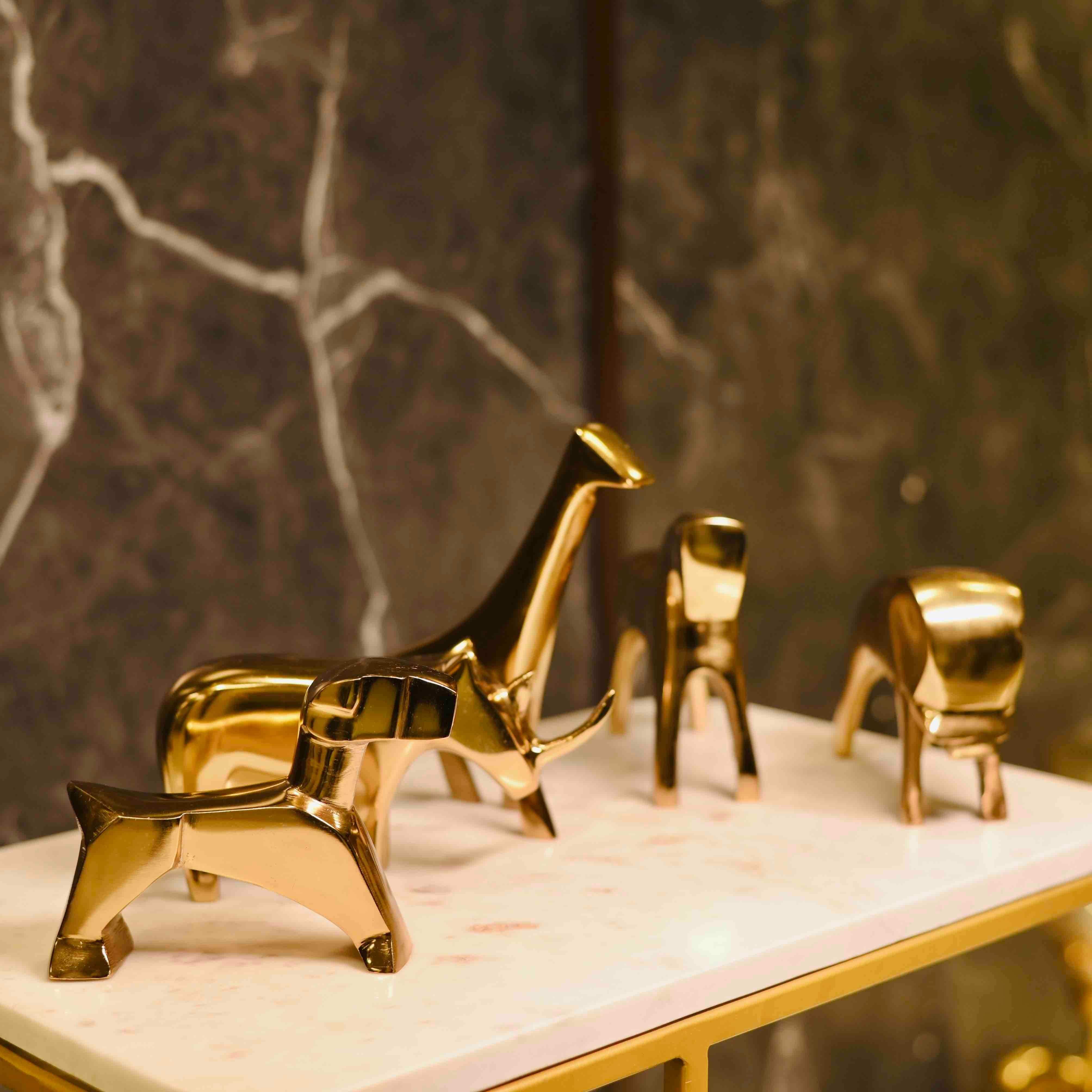 Be a trendsetter with our charming & quirky, mini animal decorative gold accents set of 5. The set includes- an elephant, horse, giraffe, rhino & dog. Intricately handcrafted, this Origami inspired Gold accent set is the perfect addition to your living space.